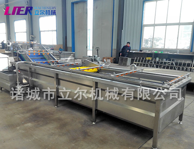 本機輸送部分采用SUS304不銹鋼網帶,運行平穩、使用壽命長等特點,符合食品衛生要求。設備中設有氣泡發生裝置,使物料呈翻滾狀態,去除產品表面殘留農藥的功效,同時可加入適量的藥劑,進行消毒固色。漂浮物可以從溢流槽溢出,沉淀物從排污口排出,以達到清洗的目的。具有洗潔凈高、節能、節水、設備穩定可靠等特點。操作簡單,維修方便、方便連線。可根據客戶要求選配臭氧殺菌。